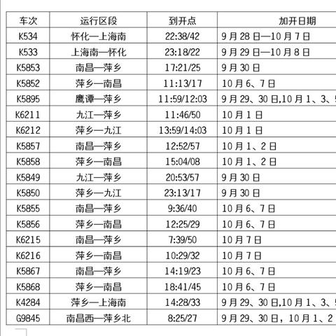 2、列车时刻可能会因天气、施工等原因有所调整,请旅客提前关注官方信息以获取最新动态。