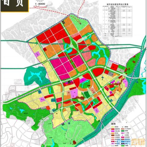 (1)交通:规划图中显示,将加强道路建设,改善交通状况,新建多条主干道,与周边区域形成快速交通网络,还将建设完善的公共交通体系,方便居民出行。